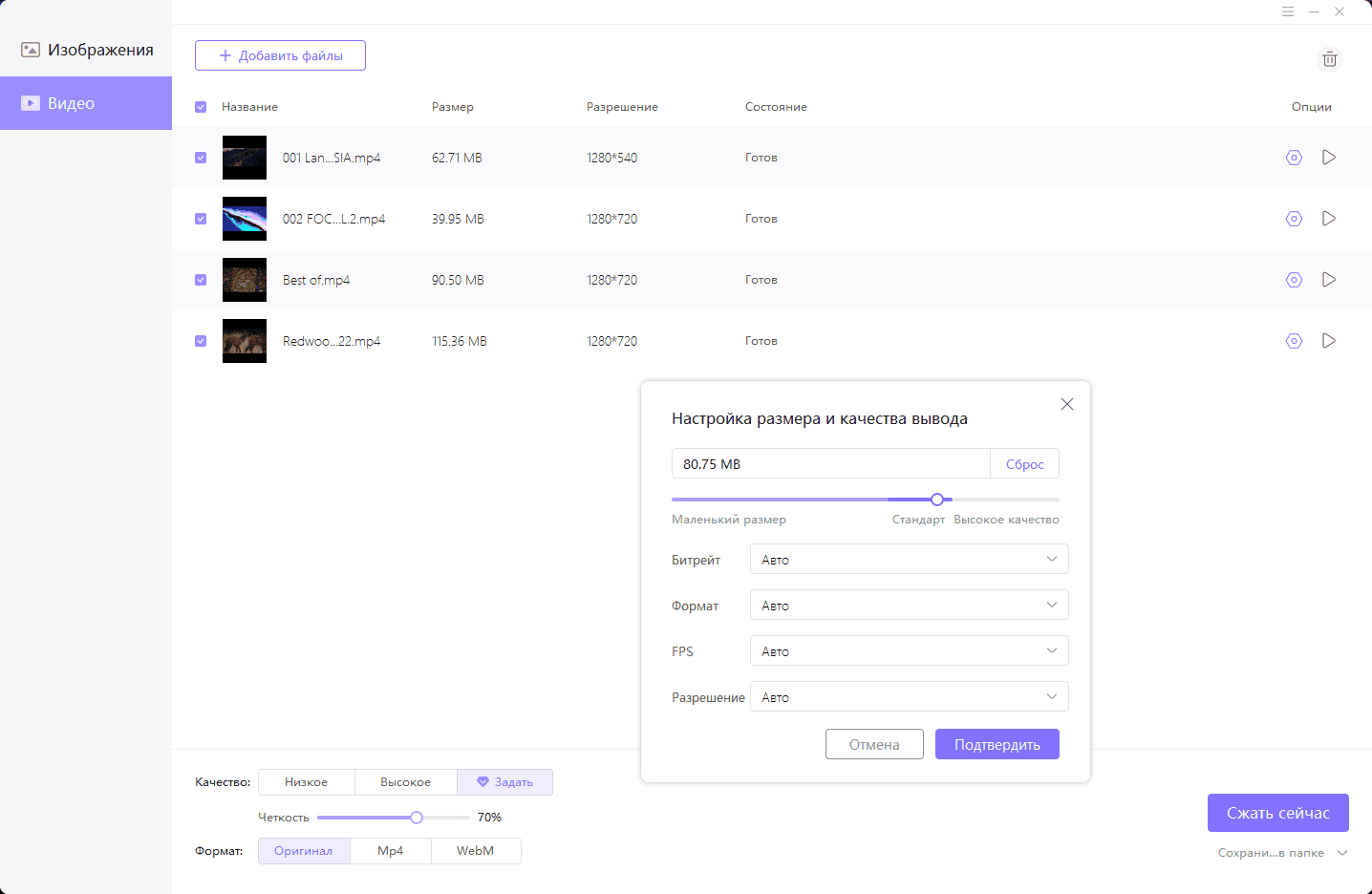 Быстро уменьшайте размер видео и изображения без потери качества. Легко сжимайте видео и изображения в одном месте