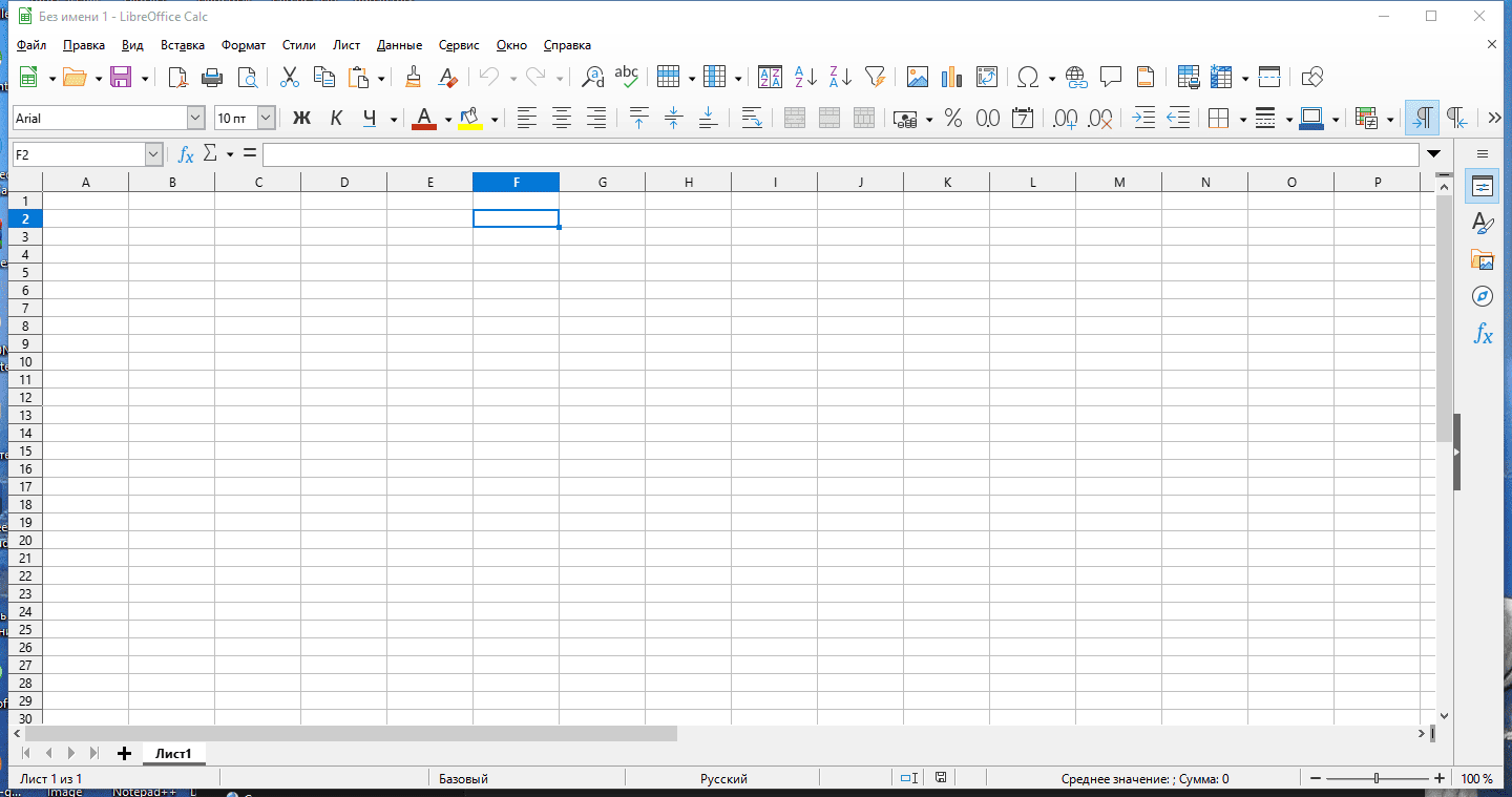 редактор электронных таблиц Calc;