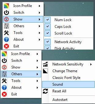 • По умолчанию все индикаторы активируются и в область уведомлений добавляются пять новых значков: Num Lock, Caps Lock и Scroll Lock, а также активность диска и сети.