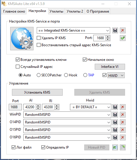 На вкладке "Настройки" вы можете установить в систему KMS-Service, Windows 7-8
