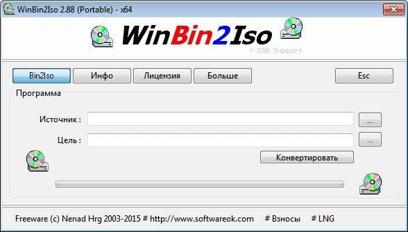 WinBin2Iso NT, 98, Me, 2000-2012, XP, Vista, 7, 8, 8.1, 10 x86 и x64