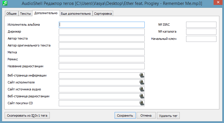 Описание: AudioShell – небольшое расширение, созданное для редактирования тегов. Способно переименовывать файлы благодаря интеграции в контекстное меню «Проводник» Windows. Позволяет изменять метаданные и название ряда медиа файлов в один миг. AudioShell предлагает поддержку типов аудио: M4A, OGG, MP3, APE, WMA, FLAC, а также ряда видеоданных (например, MP4, WMV, ASF, 3GP). Это расширение может быть полезным тем пользователям, кто проводит бесчисленные часы, организуя информацию ID3 для звуковых дорожек. Программа добавляет редактор и позволяет просматривать теги в «Свойствах» медиа файлов. Предоставляет детальную информацию о тегах, музыкальных файлах.AudioShell полностью поддерживает юникод.