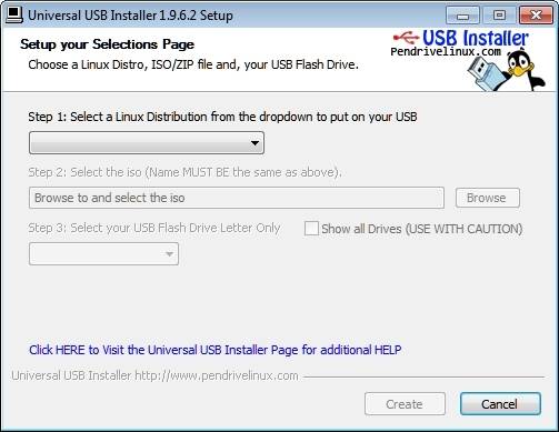 Описание: Universal USB Installer - бесплатная программа позволяет создавать загрузочные флешки из различных дистрибутивов Linux. Universal USB Installer очень проста в использовании - необходимо выбрать сборку, которая будет записана на носитель и указать расположение образа на жестком диске (присутствует возможность загрузить образ с официального сайта). Также присутствует функция Persistence и возможность отформатировать флешку в FAT32. Утилита максимальна проста в обращении, надо: выбрать нужный образ, который желаете записать на USB-носитель, указать где он находится (на жестком диске или загрузить образ с официального сайта). Нажать на "Create" и дождаться окончания процесса.