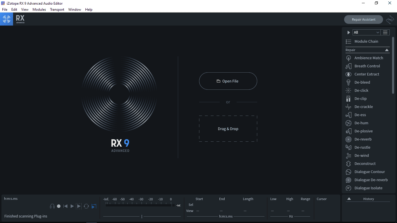 RX поставляется с модулями, которые удаляют гул, отсечение, щелчки и даже изолируют диалог от других шумов.