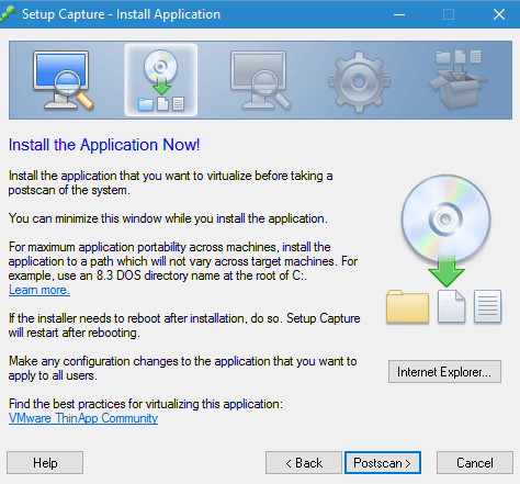 VMware ThinApp – утилита для создания портативных версий всевозможных приложений. VMWare ThinApp упаковывает приложение в контейнер, содержащий всю необходимую информацию для работы на любом компьютере без необходимости инсталляции приложения. Благодаря этому программное обеспечение не затрагивает и не изменяет текущее состояние операционной системы.