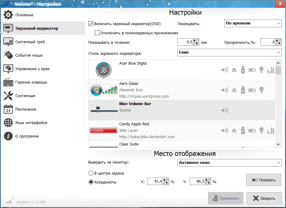Описание: Volume — альтернативный регулятор громкости, который полностью заменяет стандартный регулятор громкости Windows.
