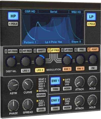 Десять уникальных схем в основном взяты из эмулируемых винтажных синтезаторов: MS2 (Korg MS20 rev2); SMP (кастом на полпути между Korg MS20 rev2 и OSCar); ОСР (ОСКар); MS1 (Korg MS20 rev1); JPR (Roland Jupiter 8 или Juno 6); SHR (Roland SH2 или SH101) и PRD (Moog Prodigy). Вы могли заметить, что в этом списке всего семь моделей, но в конце прошлого года были добавлены еще три: AMU (нестандартный дизайн, «вдохновленный фильтром ARP Odyssey Mk I»); KSM («Индивидуальный дизайн ввода, микширующий Sallen Key»); WSP (от EDP Wasp «с уникальными инверторами CMOS»).