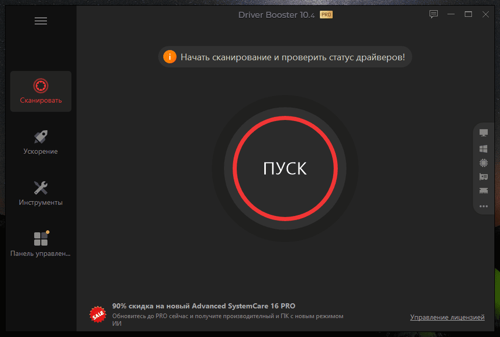 Описание: Driver Booster сканирует и определяет устаревшие драйверы автоматически, загружает и устанавливает обновления одним щелчком мыши, экономя Ваше время. Более того, он специально разработан для настройки драйверов для лучшей производительности в играх. Это правильный инструмент для защиты ПК от сбоев оборудования, конфликтов и сбоев системы.