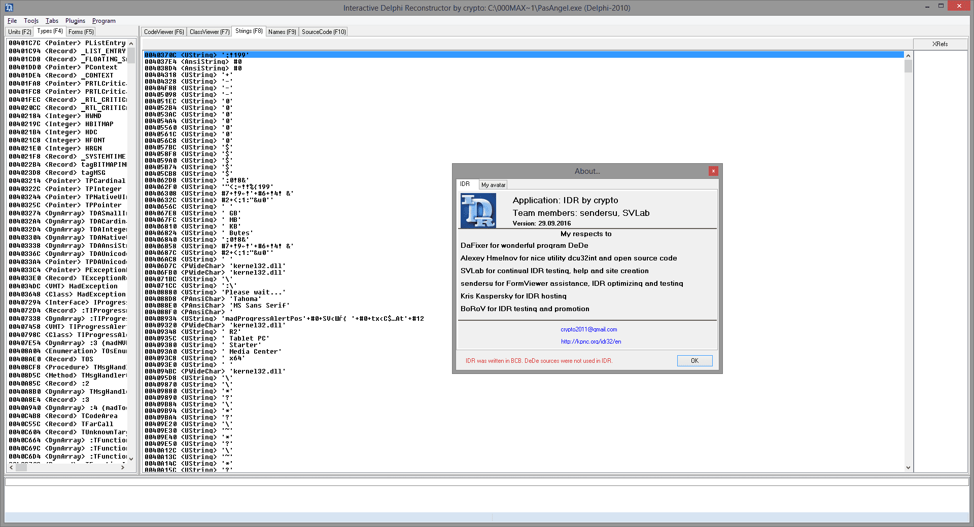 Целью проекта является разработка программы, способной восстановить большую часть исходных Delphi - текстов из скомпилированного файла, но пока IDR, как и другие Delphi - декомпиляторы, сделать этого не может. Тем не менее, IDR может значительно облегчить такой процесс. По сравнению с другими декомпиляторами анализ, выполненный IDR, отличается наибольшей полнотой и достоверностью. Высокая интерактивность делает работу с программой комфортной и (не побоимся этого слова) приятной.