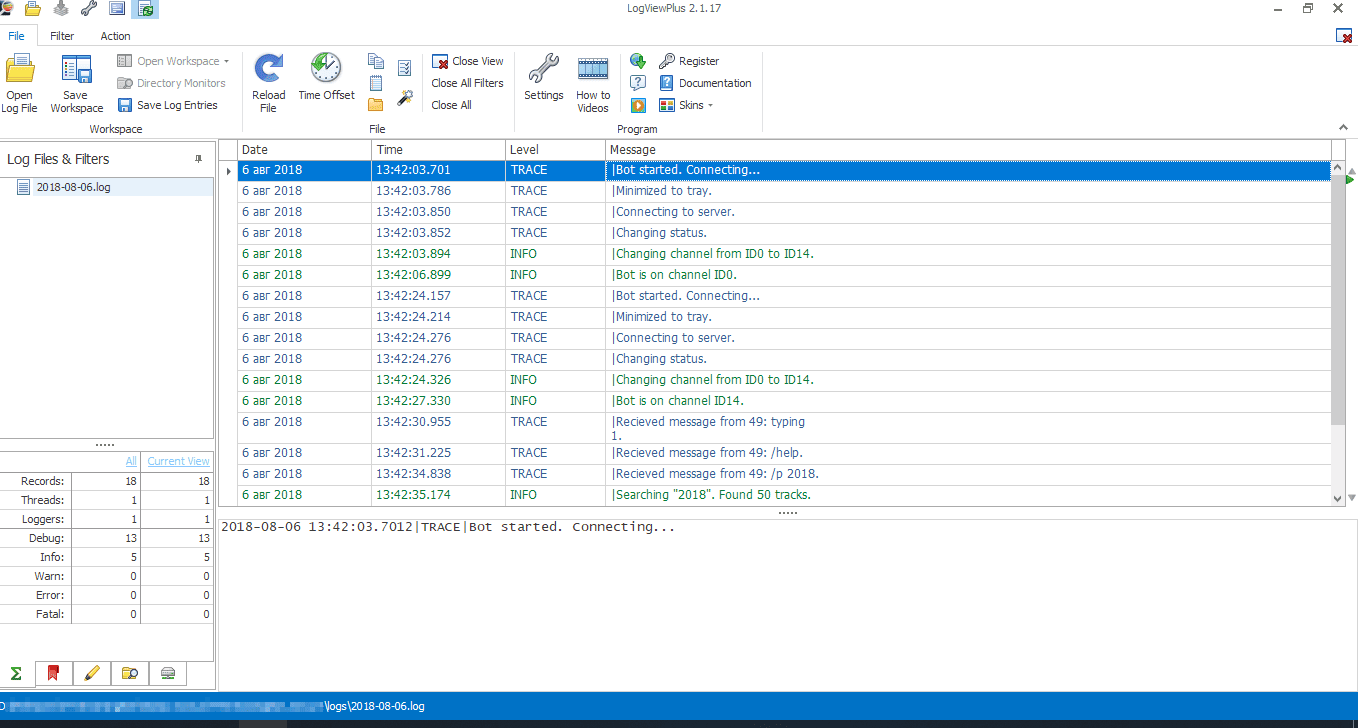 Описание: Log Viewer Plus - мощная программа, которая предназначена для просмотра и анализа лог файлов приложений или системы. Она предоставляет ряд инструментов предназначенных для работы с лог файлами, и удобный пользовательский интерфейс с поддержкой тем оформления.