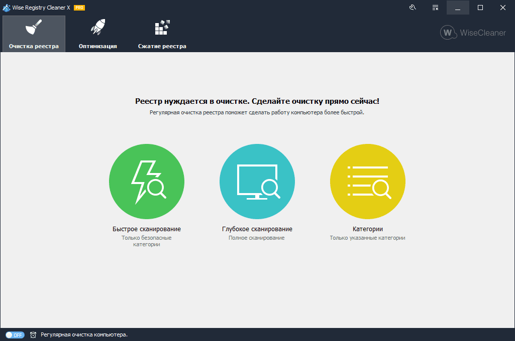 • Автоматический режим очистки реестра.