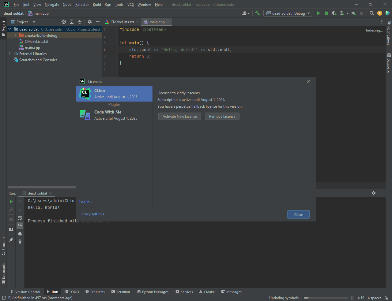 Описание: CLion — умная IDE, предназначенная для разработки на С и С++ на платформах Linux, Windows и macOS. Включает в себя поддержку системы сборки кросс-платформенных проектов CMake, Gradle C++ и compilation database, возможности анализа кода на лету, разнообразные рефакторинги и унифицированный интерфейс для работы с самыми популярными системами контроля версий.
